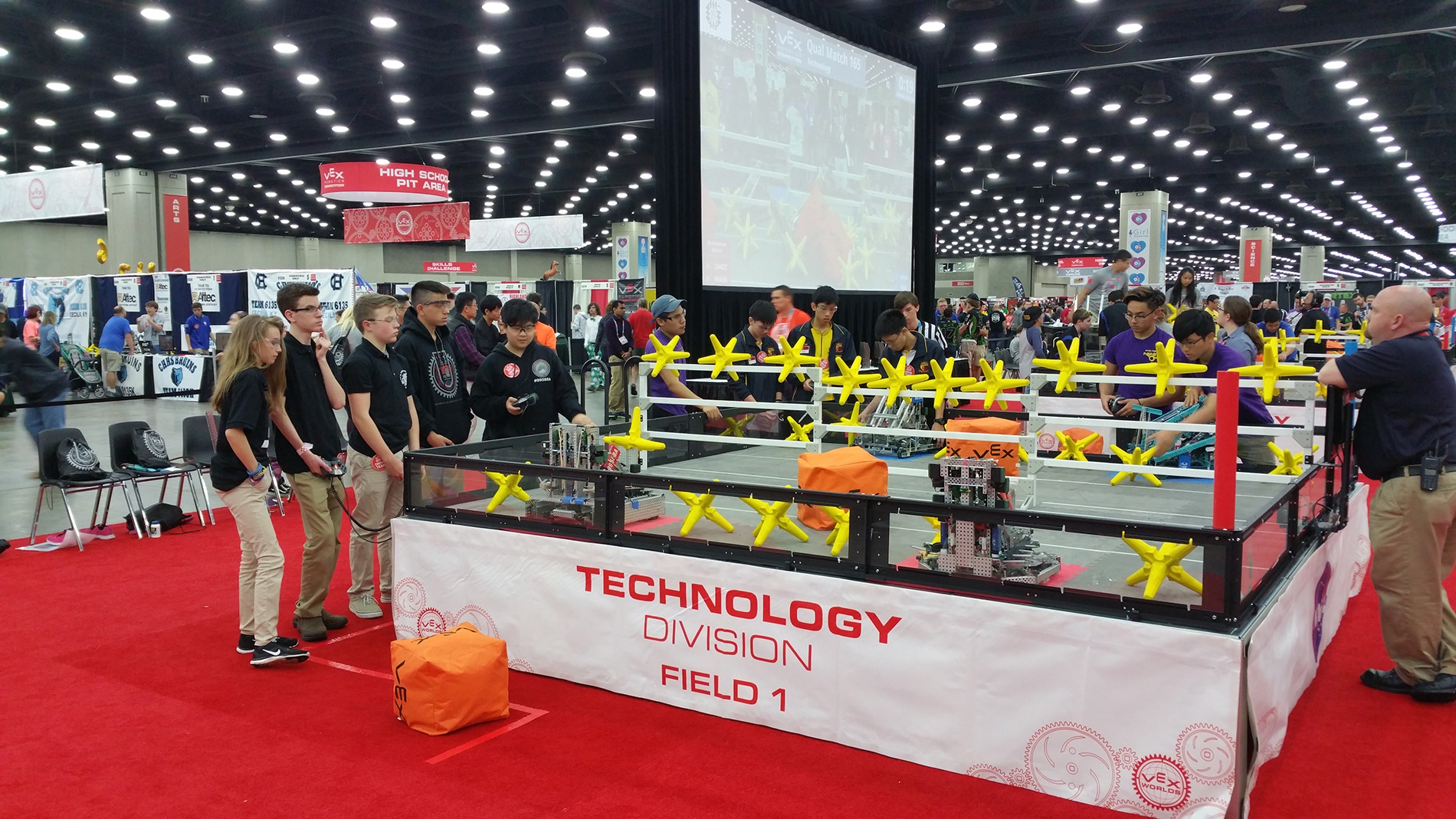 An intense game during the Vex World Competition