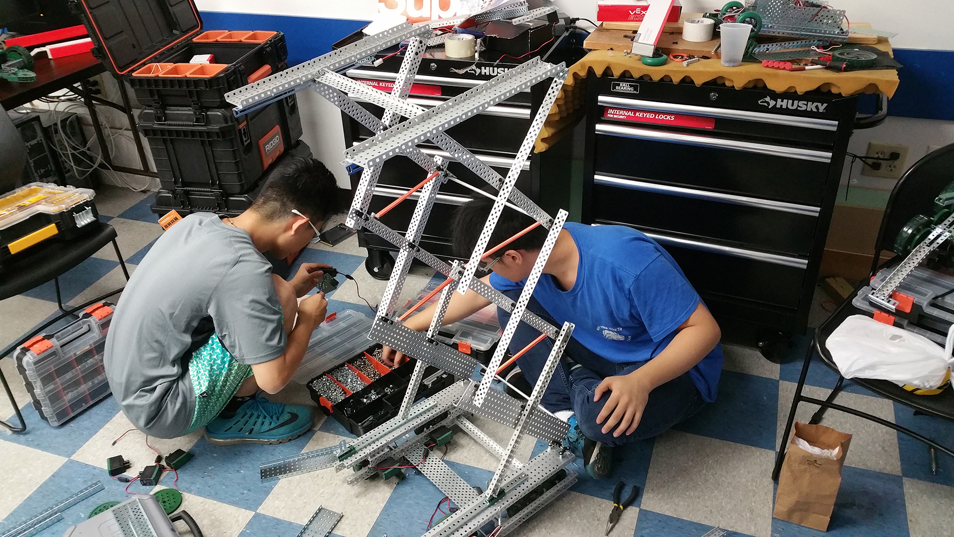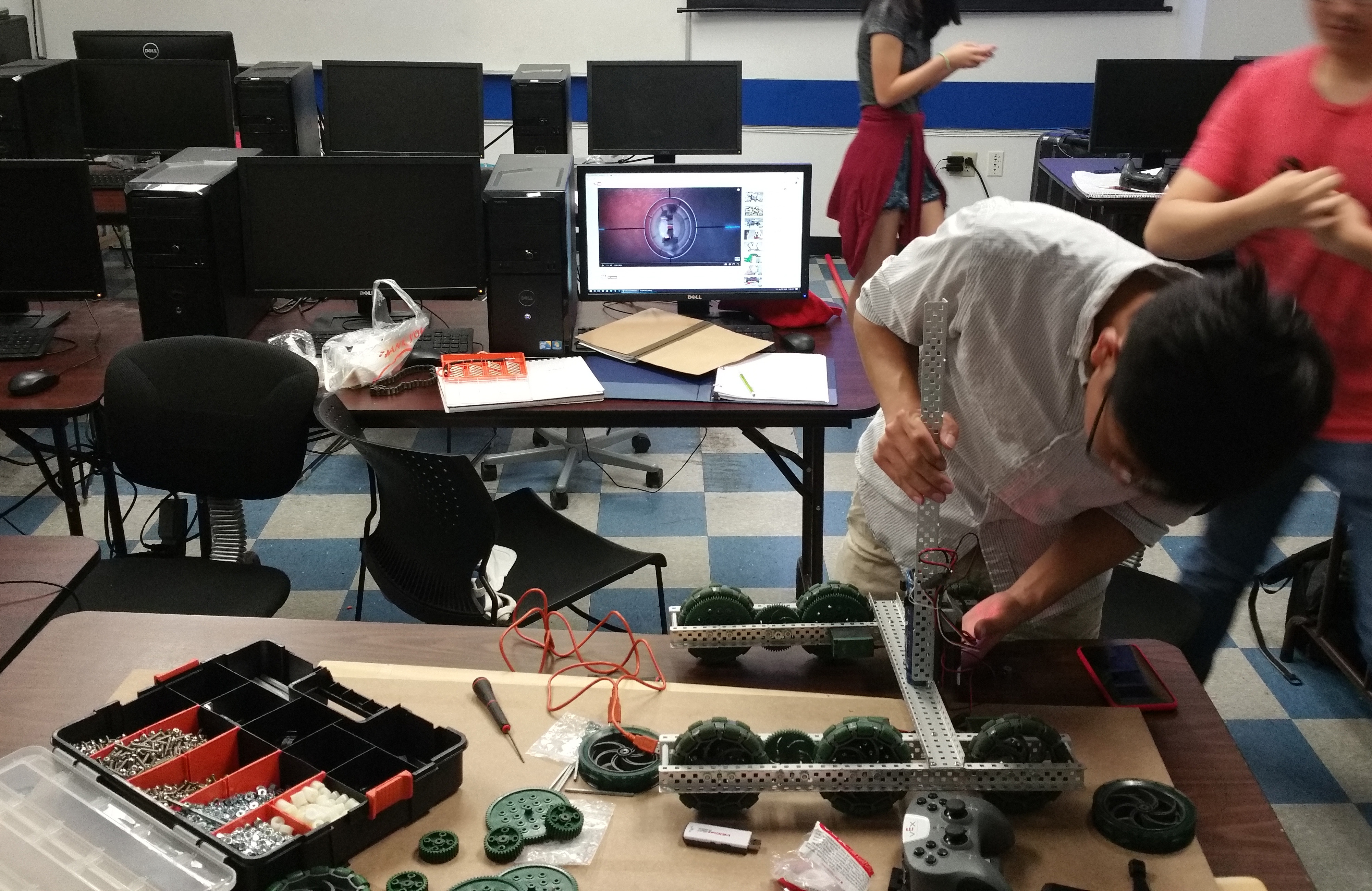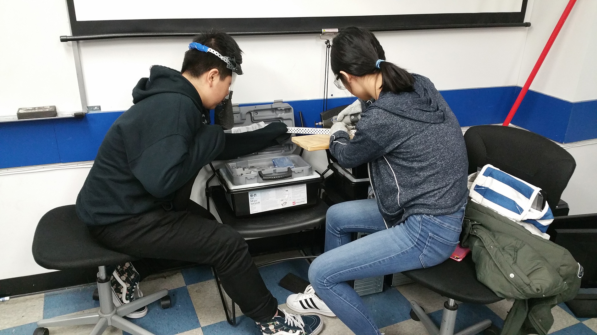 Vex competition regulates robots to be within a certain size. These changes are done at the team's dremel station where members cut parts to fit the regulated sizes